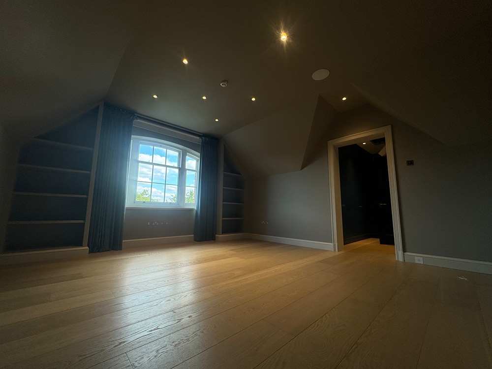 This is a new build project consisting of; 5 bedrooms, open plan kitchen diner, galleria, cinema room, games room, underground swimming pool and underground three car garage. We are currently ongoing the 1st Fix Roof construction package, which consists of a small, hipped lean too roof and Complex main roof structure.